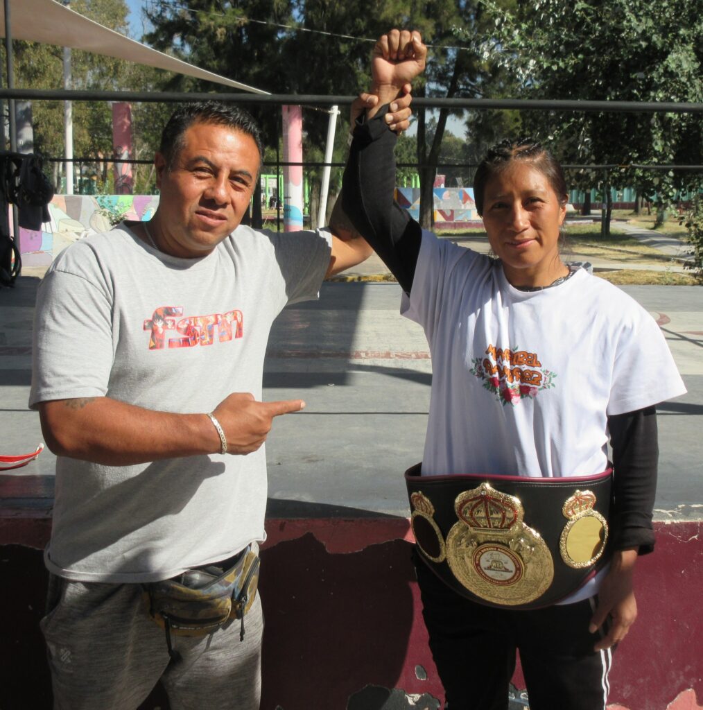 La ex campeona mundial de las 115 libras de la WBA, se fue acompañada de su mánager y entrenador Alejandro Mendoza (en la foto). Ambos expresaron sentirse seguros de llegar con el cetro a México, además de agradecer el respaldo del abogado Isaías Montesinos y de la fundación Maria, que encabeza Deborah Sáenz.