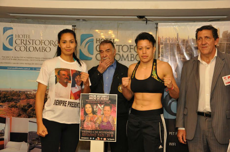 Las bonaerenses Celeste del Carmen “la Bestia” Peralta (8-0, 1 KO) y Ana Laura “Monita” Esteche (11-4-3, 2 KO), esta tarde cumplieron con la báscula para la histórica cita que se celebrará este viernes, 4 de noviembre, en el estadio de la Federación Argentina de Box (Castro Barros 75), donde estará en disputa la triple unificación mundialista de la división superligero, en el que se podrán en juego las coronas de la Federación Internacional de Boxeo (FIB), Organización Mundial de Boxeo (OMB) y Asociación Mundial de Boxeo (AMB). La misma será televisada por la pantalla de TyC Sports y TyC Sports Play desde las 22:00, en el marco de una nueva producción internacional de O.F.R. Promotions. Las localidades, a partir de los $150, se podrán obtener desde las 20:15 en boletería del recinto.