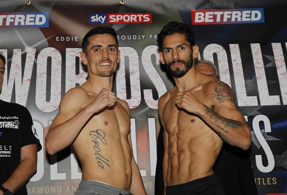 Ambos campeones estelares se sometieron este viernes al pesaje oficial. Crolla detuvo la balanza en 134.5 libras mientras Linares registró un peso de 134.2 libras.