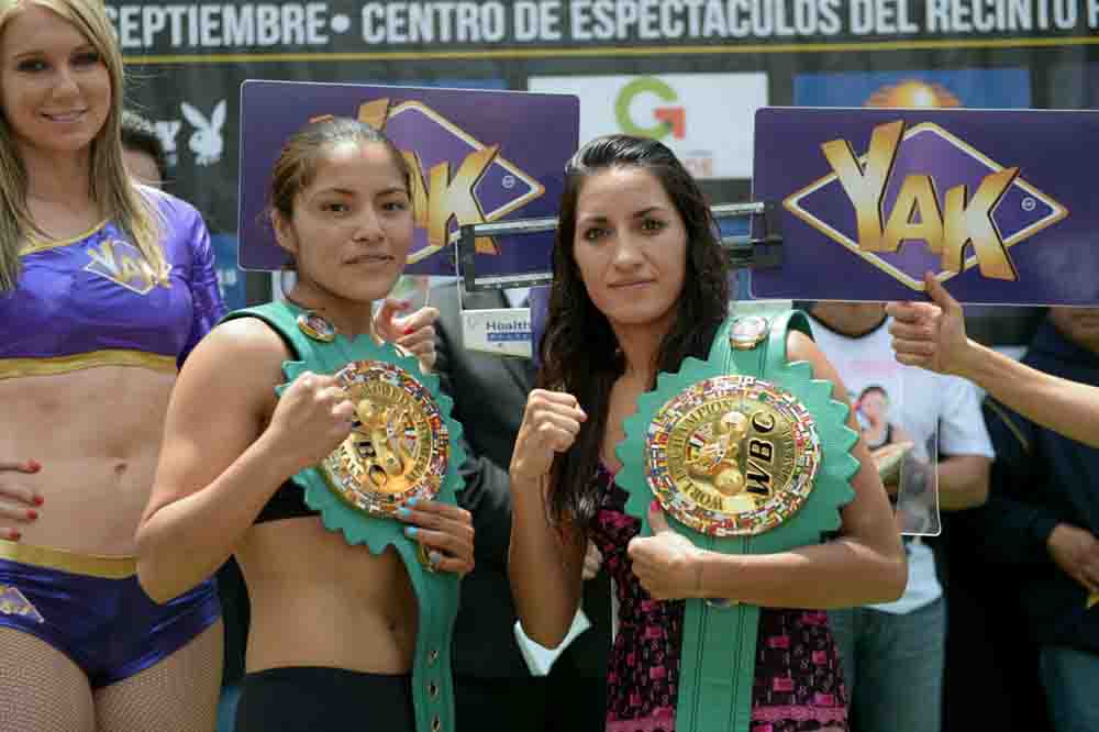La “Roca“, orgullo de San Cristóbal Huichochitlán, Estado de México registró un tonelaje de 49.000 Kg. mientras que la “Joya“ que viene de ganar de forma brillante la eliminatoria final por el título detuvo la balanza en un peso de 48.100 Kg. siendo ambas declaradas en condiciones de buscar el cinto del Consejo Mundial de Boxeo por el supervisor en turno.