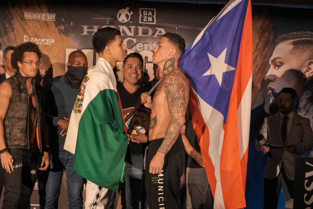 Este viernes, en la ceremonia de peso, Munguía registró el tope de la división, 160 libras, mientras que Rosado subió sobrado a la báscula, y marcó por debajo, 159.4 libras, mostrando ambos un gran trabajo físico, y una motivación a toda prueba.