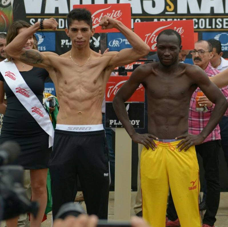 El orgullo de Otumba, Estado de México presumiendo un físico a todas luces bien trabajado frente a la romana registró un tonelaje de 54.200 Kg. mientras que el vigente campeón Internacional supergallo del Consejo Mundial de Boxe dejó patente su excelente preparación al marcar 53.400 Kg. ambos por debajo del límite establecido en la categoría de las 122 libras.