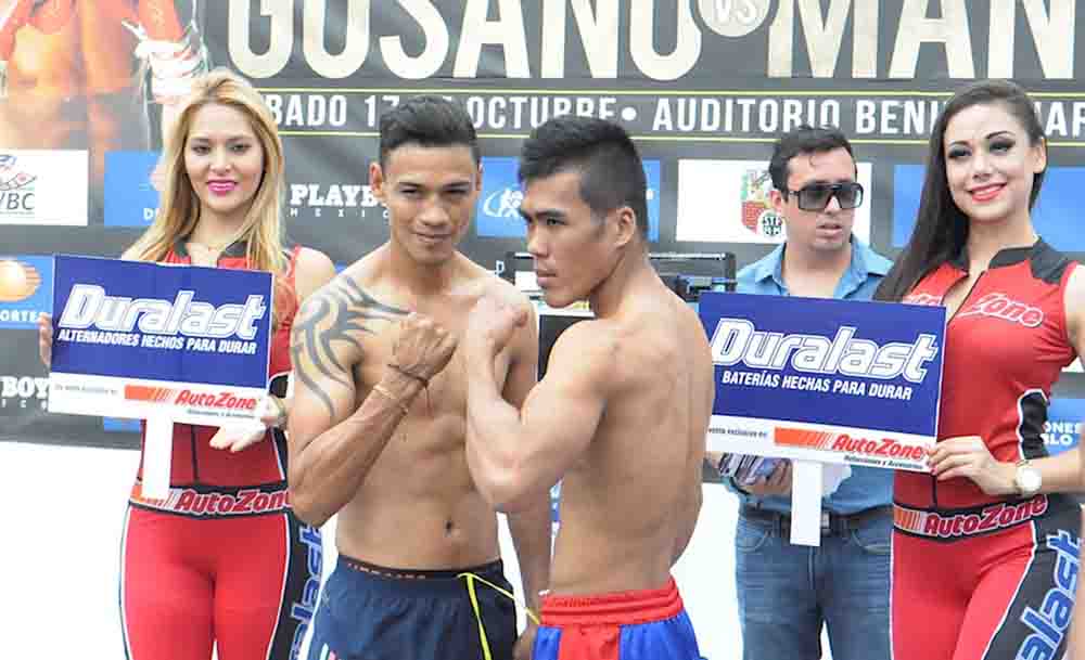 Rojas, con un físico bien trabajado detuvo el fiel de la balanza en un tonelaje de 57.200 Kg. mientras que el tagalo, quien dejó ver su gran preparación reflejada en su estado atlético, registró un tonelaje de 56.800 Kg. ambos fueron declarados aptos por el supervisor en turno del Consejo Mundial de Boxeo.