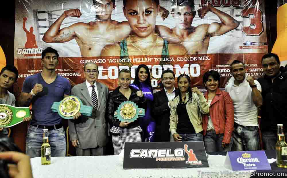 Zulina y Maribel, quienes contenderán por el campeonato mundial del CMB de la división supermosca, estuvieron cara a cara en rueda de prensa organizada hoy en la capital mexiquense.