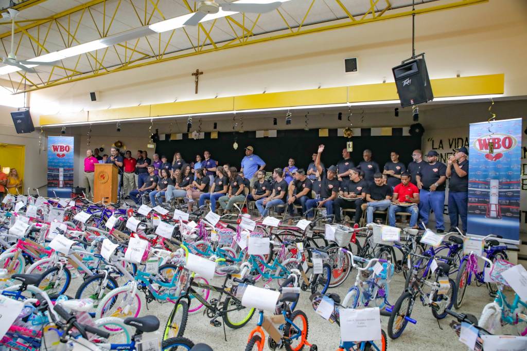 En la concurrida actividad, los niños recibieron mochilas, bicicletas, bolas de baloncesto y voleibol y artículos escolares.