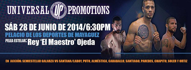 El campeón ligero Internacional de la IBO y FEDECARIBE de la AMB, Rey “El Maestro” Ojeda tendrá el turno estelar de la cartelera que presentará Universal Promotions este sábado, 28 de junio en el Palacio de Recreación y Deportes de Mayagüez, esto como parte de la serie “NOCHE DE CAMPEONES DIRECTV”.
