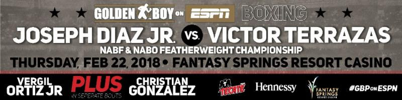 Terrazas (38-4-2, 21 nocáuts) sostendrán un entrenamiento el jueves 15 de febrero en Azteca Boxing Club comenzando a las 12:00 p.m. PT. Díaz defenderá sus títulos ante el ex monarca mundial en un pleito a 10 giros en peso pluma el jueves 22 de febrero en la edición de Golden Boy Boxing on ESPN desde el Fantasy Springs Resort Casino.