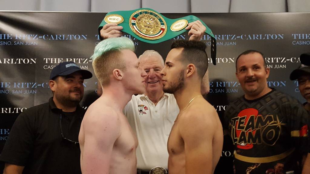 El pegador Carlos ‘Pote’ Vidal ( 11-0, 11 KO ) de San Germán, pesó 127 libras y Luis Díaz ( 3-2, 2 KO ) de Coamo pesó 128 libras en combate a seis asaltos.