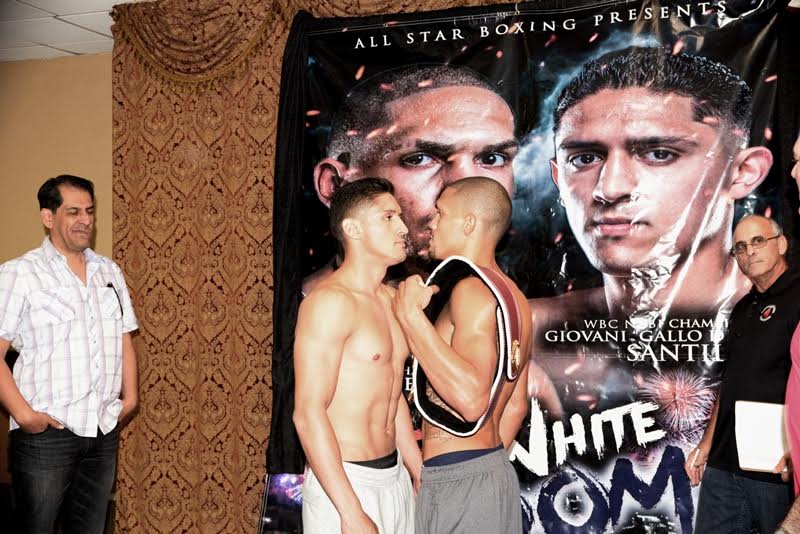 Pelea estelar el campeón NABO OMB de las 147 libras, Sammy Valentin ( 12-0, 9 KO ) pesó 146.6 libras y su oponente Giovanni ‘Gallo de Oro’ Santillan ( 21-0, 11 KO ) de California peso 146.
