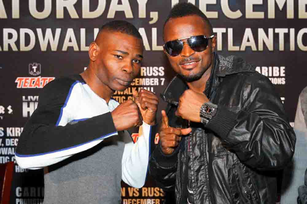Guillermo Rigondeaux (izq.) y Joseph Agbeko posan durante una conferencia de prensa el miércoles en Nueva York, previa al combate del sábado 7 de diciembre en Atlantic City, Nueva Jersey. Ed Mulholland / Ed Mulholland/Top Rank
