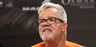 Freddie Roach favorece a Canelo sobre Golovkin “por la edad”, el kazajo tiene 36 años, el pecoso 28 en septiempre; tuvieron 35/27 para la primera pelea. Por lo que se lee y/o escucha, este “trainer emérito” superpremiado, galardones concedidos tantas veces que lo convirtieron en profano y a la ceremonia en profanación; fundamentalmente porque “entrenó a Pacquiao” (que ha seguido atacando de frente y golpeando en el aire, pero le “enseñó” lo otro), cuya culpabilidad por todo tiene sello de la cofradía Arum-HBO, no tiene intención de mirar por el retrovisor, no se considera a sí mismo, no asume una actitud docta al comentar, ni el público que lo “apapucha” tampoco; entonces no pasa un día en el que, en vez de callarse para no hacer el ridículo, confunda ano con boca y expulse…bueno, ya sabe.