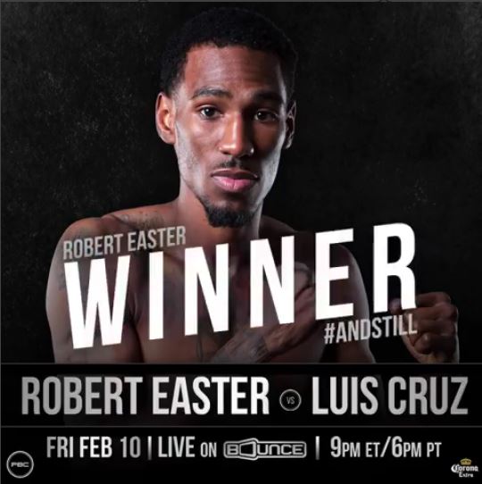 TOLEDO, OH (February 10) – Nearly 10,000 fans turned out for hometown hero Robert Easter (19-0, 14 KOs) as he impressively defended his lightweight world title against Puerto Rico’s Luis Cruz (22-5-1, 16 KOs) at the Huntington Center in Toledo, OH in the main event of Premier Boxing Champions: The Next Round on Bounce TV. The 2012 Olympic alternate used his reach and power throughout the fight, knocking Cruz down three times en route to a unanimous decision victory.