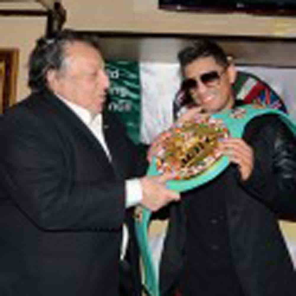 En ceremonia especial que trasladó los económicos Martes de Café a un restaurante de Insurgentes Sur, el presidente del WBC, don José Sulaimán Chagnón, hizo entrega del precioso cinto verde y oro al esteta tapatío, quien aprovechó para anunciar sus intenciones de presentarse ya como tricampeón del mundo, en un escenario mexicano con el fin de darse a conocer ante su afición para después cumplir con la defensa obligatoria ante el celayense Robinson Castellanos que “se ganó su oportunidad al ir a ganar a Panamá”.