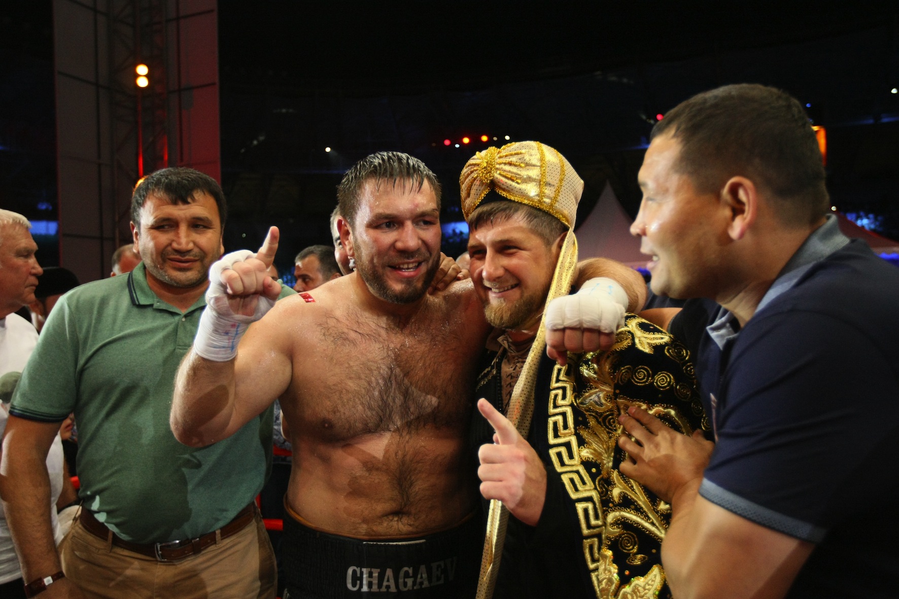 No other but Chechen President Ramzan Kadyrov was the first to congratulate Chagaev in the ring. While the fight lasted Kadyrov even took charge as chief second coaching “his” champion in the corner. It was the leader of the Chechen Republic who brought this world title fight to Grozny along with promoter Timur Dugazaev (TEREK Box Event). Accordingly Chagaev thanked the President for all his help and support.
