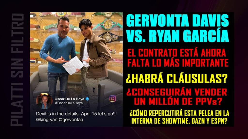 Oscar de la Hoya mostró en las redes el contrato recibido al término de su ultimátum al equipo de Gervonta y por ahora, hay pelea. El documento debe ser estudiado, necesitará ajustes y seguramente tendrá un juego de ping-pong de un escritorio al otro por varios días. Se supone que hay incluida una cláusula fundamental que les comento en el video.