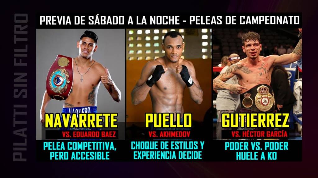 Un sábado intenso tendrán los fanáticos, con varias peleas de título. De lo que veremos a la noche destacan los desafíos del Vaquero Navarrete contra Eduardo Báez, La Avispa Puello ante Bathyr Akhmedov y Roger Gutiérrez contra Héctor García. Vea y entienda en este video lo que esperamos de esas peleas.