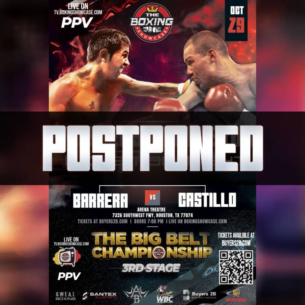 Con tiempo insuficiente para la recuperación total debido a la seguridad médica, la promotora Boxing Showcase ha pospuesto la exhibición a una fecha por señalar.