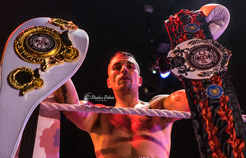Referee Lee Murtagh waved the bout of on the 1 minute 48 second mark of the fifth round and shortly after PBC head honcho Russell Jacques proudly presented McAllister with the stunning PBC International and Commonwealth belts.