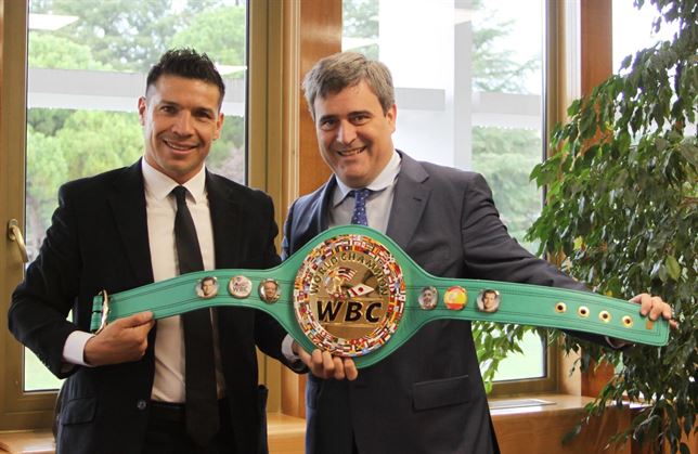 El presidente del Consejo Superior de Deportes de España, Miguel Cardenal, recibió al ex campeón argentino, Sergio ‘Maravilla’ Martínez, quien le entregó un cinturón de campeón del Consejo Mundial de Boxeo como muestra de agradecimiento por su apoyo al deporte.