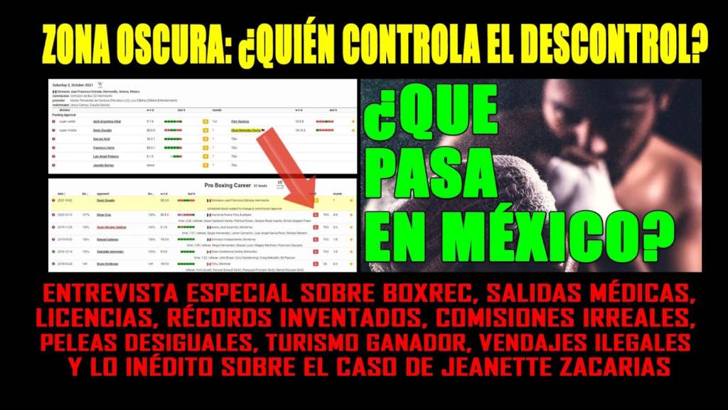 Primer episodio de La Zona Oscura. Peleas desiguales, papel de BoxRec, récords falsos, licencias, salidas médicas, comisiones apócrifas, carteleras inexistentes, falta de seguros y un dato inédito en el caso Jeanette Zacarías. Entrevista con guía temática a Isaac Guerra. Mueva el cursor para encontrar el tema de su preferencia.