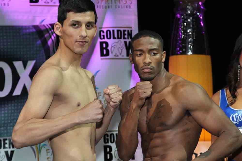 Promising unbeaten junior middleweight Hugo “The Boss” Centeno Jr. (17-0, 9 KO’s) of Oxnard, Calif., faces KeAndrae “Lightning” Leatherwood (17-2, 10 KO’s), of Tuscaloosa, Ala., in the main event at Fantasy Springs Resort Casino. Centeno tipped the scale at the division-limit of 154 pounds while Leatherwood weighed 153.4 pounds.
