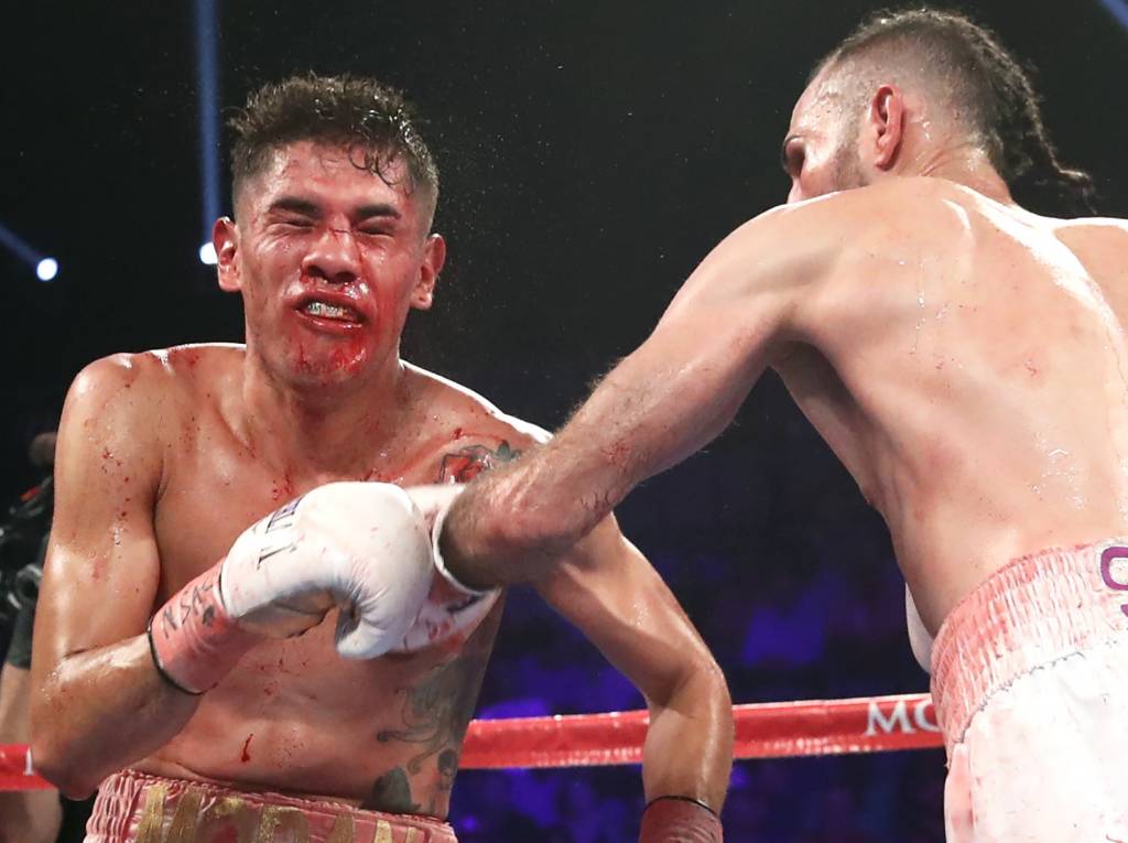 Pedraza conecta con su izquierda en el ensangrentado rostro de Morán.