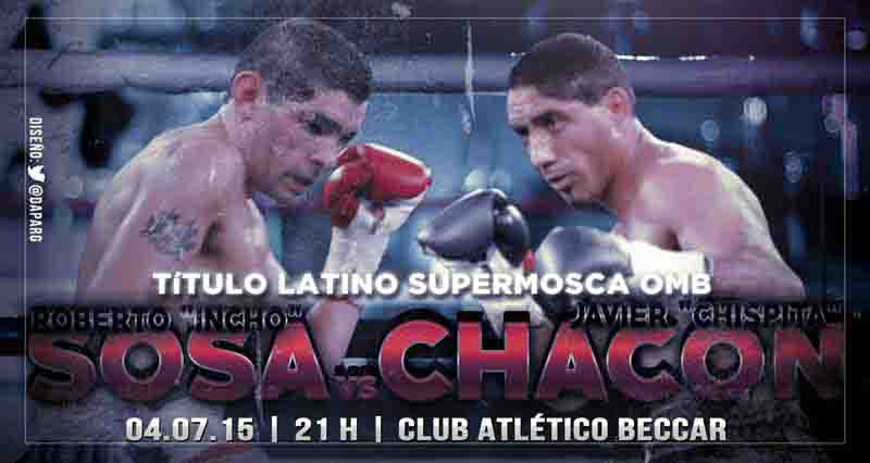 La velada contará con el choque estelar que llevarán a cabo el cordobés Roberto Domingo “Incho” Sosa (26-2, 14 KO), que defenderá por primera ocasión su título Latino Interino Supermosca/52,163 kilogramos de la Organización Mundial de Boxeo (OMB) -donde se encuentra ubicado en el puesto #8 del ranking mundial- frente al mendocino Javier Nicolás “Chispita” Chacón (20-3, 5 KO), contienda pactada a la distancia de diez asaltos de 3×1.