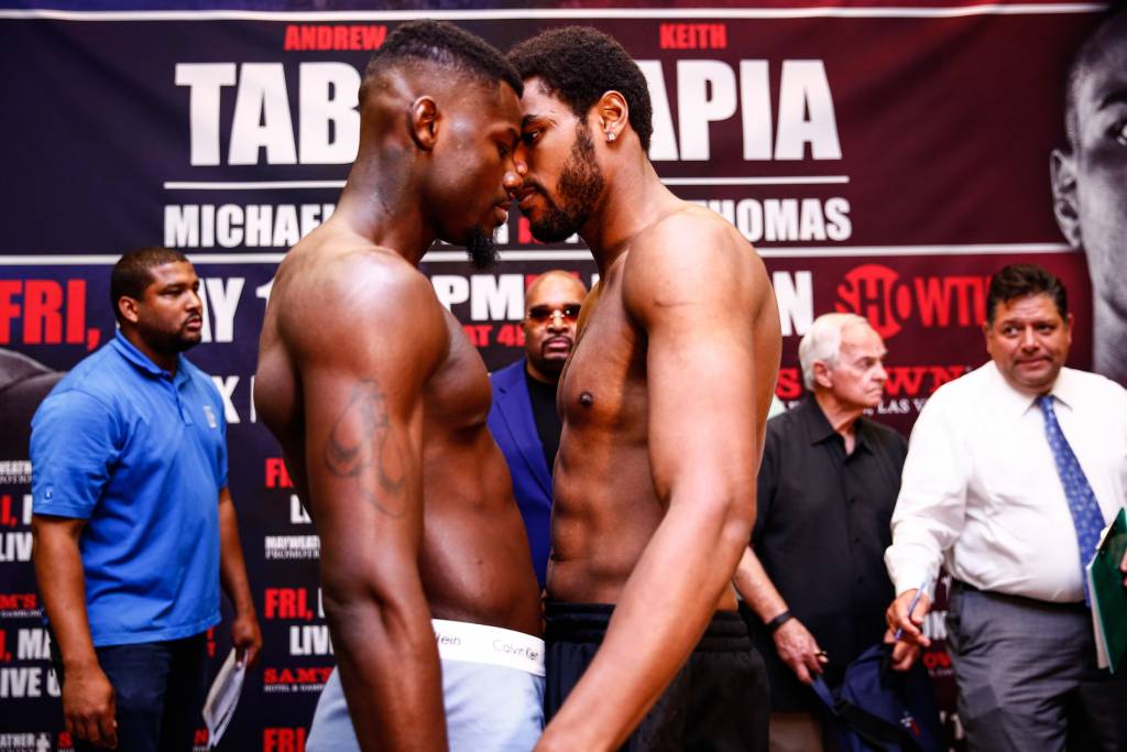 LAS VEGAS (May 12, 2016) – A fight nearly broke out between undefeated cruiserweights Andrew “The Beast”Tabiti and Keith “Machine Gun” Tapia at Thursday’s weigh-in for the ShoBox: The New Generation quadrupleheader tomorrow, May 13, live on SHOWTIME (10 p.m. ET/PT, delayed on the West Coast) from Sam’s Town Live.
