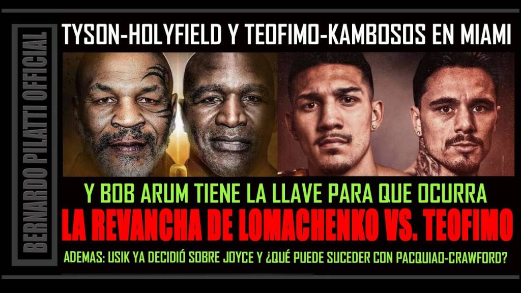 A su vez estamos a la espera de que Triller confirme lo que adelantó Teófimo López sobre el día y lugar de su pelea contra George Kambosos. Más allá que si bien eso es importante, más importante es lo que se supo por boca de Bob Arum, cuando le respondió al padre de Teófimo, cuando este insistió en que su hijo solo aceptará peleas de PPV.