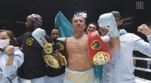 Saitama, Japan: Middle: Gennady Golovkin (42-1-1) W TKO 9 Ryota Murata (16-3). Fly: Junto Nakatani (23-0) W TKO 8 Ryota Yamauchi (8-2). Light: Shuichiro Yoshino (15-0) W TEC Dec 11 Masayuki Ito (27-4-1).