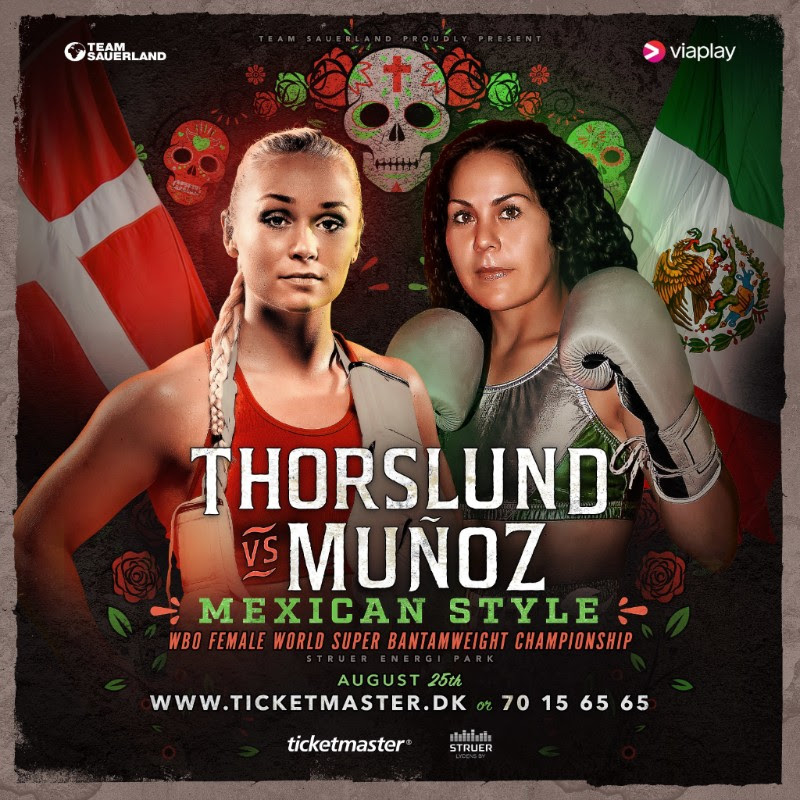 Tickets for the WBO World Super Bantamweight Championship contest between Dina Thorslund and Yessica Munoz on August 25 at the Sruer Energi Park are on sale now and available via www.ticketmaster.dk or by calling (+45) 70 15 65 65.