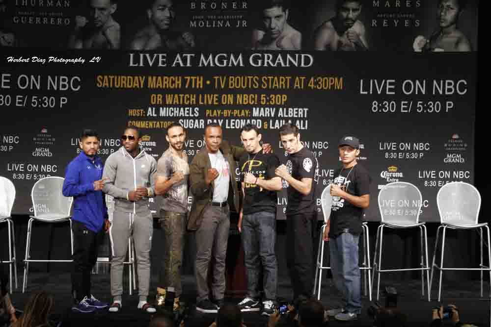 The 10 th round witnessed another momentum shift as Guerrero came out of his corner on fire in a rage to avenge the extra point loss in the previous round. He kicked it into high gear pressuring Thurman, smothering him at close range making it a phone booth fight along the ropes which prompted everyone at the MGM Grand to stand on their feet cheering both men. Thurman landed some shots of his own but after putting on a boxing clinic for roughly a half an hour, he looked visibly drained. Guerrero kept up the same approach for the championship rounds as he backed up “One-Time” even with blood streaming from his left eye and a swollen right eye. Thurman cruised those last two rounds by landing one or two clean shots before backing up and using his legs to avoid unneeded damage.