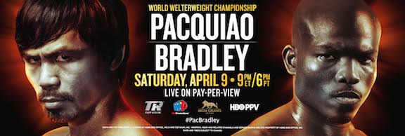 Promoted by Top Rank®, in association with MP Promotions and Tecate, Pacquiao vs. Bradley will take place Saturday, April 9, at the MGM Grand Garden Arena in Las Vegas, Nev.  This will also mark the first time former Trainers of the Year Roach and  Atlas have faced each other from opposite corners. The Pacquiao vs. Bradley championship event will be produced and distributed live by HBO Pay-Per-View® beginning at 9:00 p.m. ET / 6:00 p.m. PT