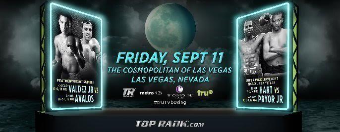 LAS VEGAS, NV. – Top 10 contenders ÓSCAR VALDEZ (17-0, 14 KOs) from Nogales, Sonora, Mexico, JESSE “Hard Work” HART (17-0, 14 KOs), from Philadelphia, PA., and CHRIS “The Hitman” AVALOS (26-3, 19 KOs), from Lancaster, Calif., and AARON PRYOR JR. (19-8-1, 12 KOs), from Cincinnati, will have their Official Weigh-In Today! Thursday, September 10. Fighters will reports at 4:00 P.M. and step on the scale beginning at 5:00 P.M. PT, at Rose. Rabbit. Lie. inside The Cosmopolitan of Las Vegas (3708 Las Vegas Blvd. South, Las Vegas, NV 89109). The fighters teams will be available for interviews. The weigh-in will be streamed live, beginning at 8:00 p.m. ET / 5:00 p.m. PT via www.toprank.tv.