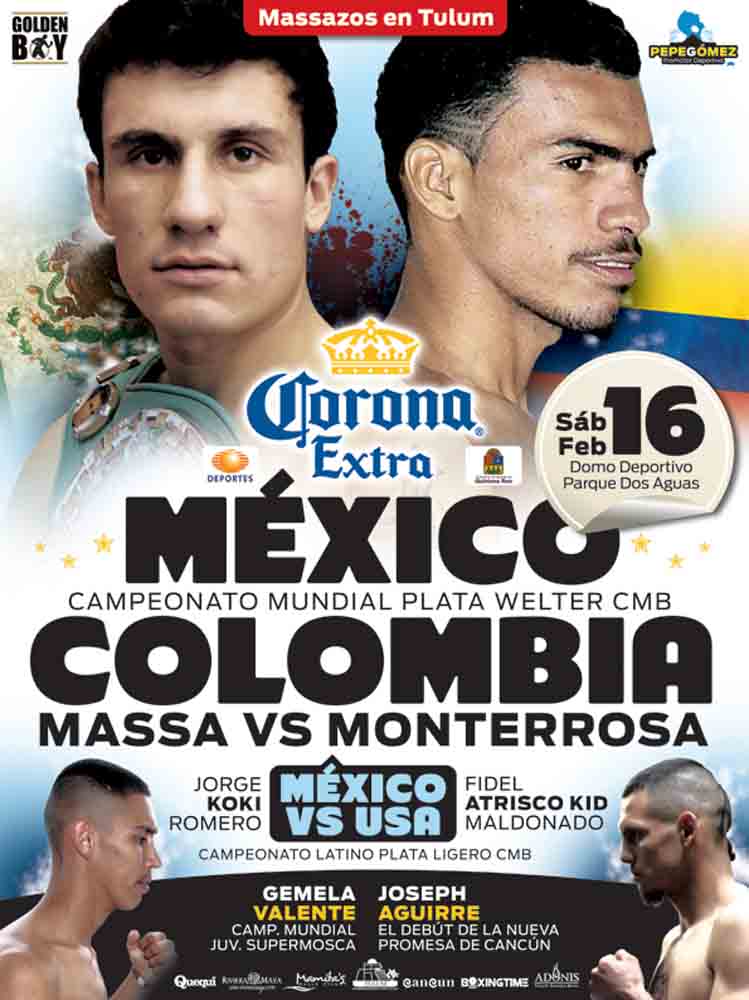 El coahuilense Roberto “Massa” Ortiz intentará adjudicarse el cinturón de campeón mundial Plata de peso Welter del Consejo Mundial de Boxeo (CMB) enfrentando al colombiano Fidel Monterrosa, este próximo sábado 16 en el combate estelar a 12 asaltos de la velada “Massazos en Tulum” que se disputará en el Domo Deportivo del Parque “Dos Aguas” de este joven municipio quintanarroense.