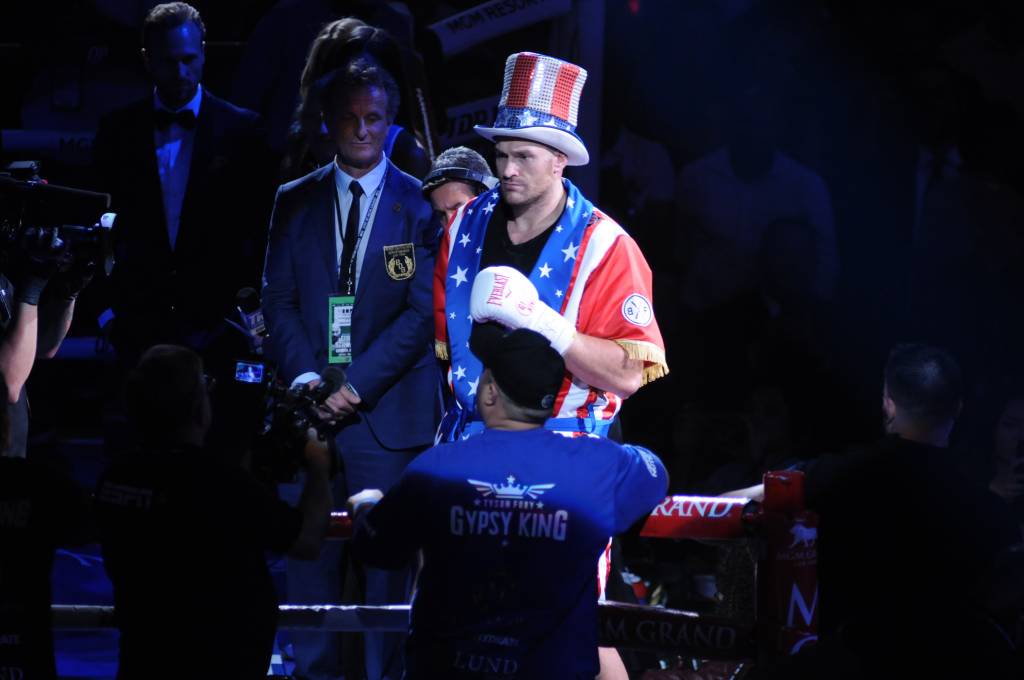 En el primer asalto Fury no quiso estrenar el banquillo que se le hizo a modo de que se sintiera a gusto durante el intermedio y espero de pie la campana del segundo asalto.