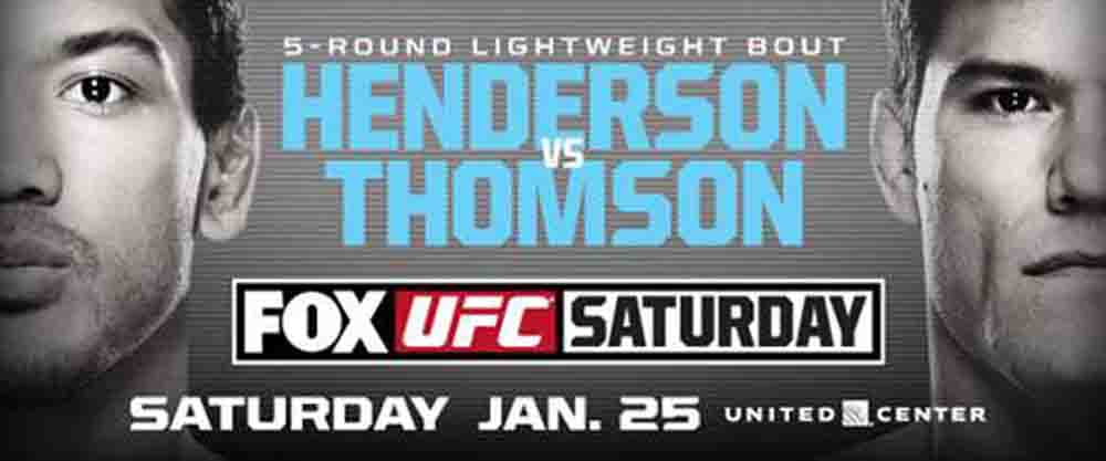 Las Vegas, Nev. – The Ultimate Fighting Championship® returns to United Center in Chicago, Ill. on Saturday, Jan. 25, 2014 with a battle of former champions looking to get back into the title hunt. Former UFC lightweight champion and No. 1 ranked contender Benson Henderson (19-3, fighting out of Phoenix, Ariz.) takes on the former STRIKEFORCE® lightweight king and No. 4 Josh Thomson (20-5, fighting out of San Jose, Calif.) with the winner moving closer to a date with reigning champion Anthony Pettis.