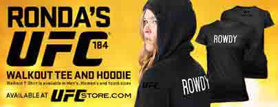 The undefeated Rousey (10-0, fighting out of Venice, Calif.) will be wearing the winning design as she enters the Octagon® to defend her title against fellow unbeaten and No. 1 contender Cat Zingano (9-0, fighting out of Broomfield, Colo.) at UFC 184 live at STAPLES Center in Los Angeles on Saturday, Feb. 28.