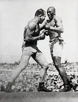 Stanley Ketchel subió el 16 de octubre de 1909 pesando 165 libras, era el campeón peso mediano y le apodaban el Asesino de Michigan por su instinto fiero y agresivo. El campeón pesado llevó la báscula a 205. En el episodio # 11, el retador lo adivinó a la mandíbula, Johnson cayó, se levantó y ganó por nocao el pleito a 20 vueltas.