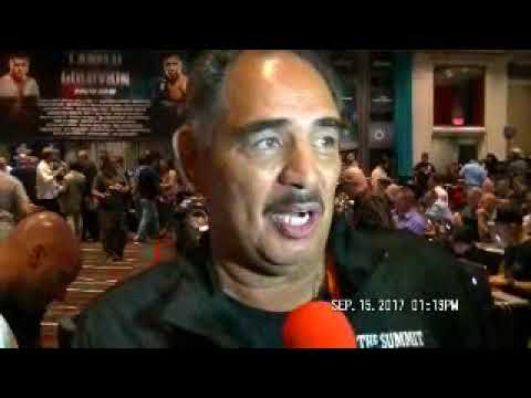 Abel Sánchez, entrenador de Gannady “GGG” Golovkin hablando con la prensa después del pesaje para Golovkin vs Canelo.