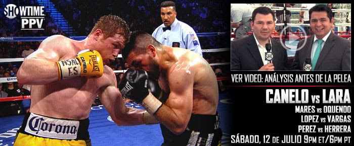 El súperestrella mexicano y ex monarca mundial superwelter CMB/AMB, Canelo Alvarez, ha decidido aceptar el reto del contrincante más temido de la division, el orgullo cubano y campeón mundial superwelter de la AMB, Erislandy “The American Dream” Lara, el sábado 12 de julio en vivo por SHOWTIME PPV® desde el MGM Grand Garden Arena en Las Vegas.¡Prepárate para ésta pelea de SHOWTIME PPV® con el análisis de los comentaristas de boxeo de SHOWTIME® Raúl “El Diamante” Márquez y Alejandro Luna!