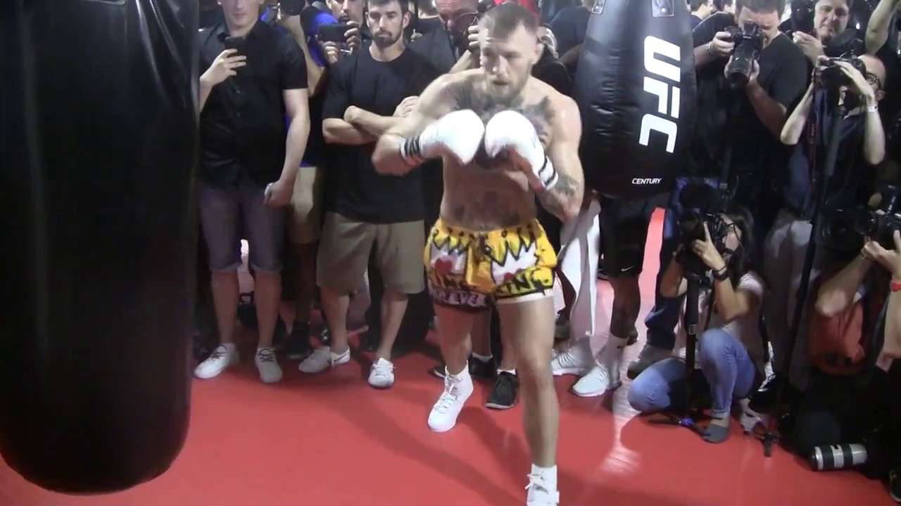 Conor McGregor hosted a media workout this afternoon in advance of his historic showdown with Floyd Mayweather, Saturday, August 26 from T-Mobile Arena in Las Vegas in an event produced and distributed live by SHOWTIME PPV.