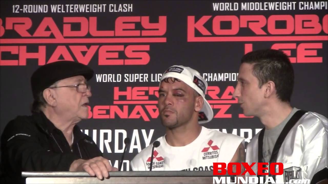 Diego Chaves at the Bradley-Chaves post fight presser discussing his draw in his fight with Timothy Bradley. Judges scored the fight 116-112 for Chaves, 115-113 Bradley and 114-114. The fight took place today Saturday, 12/13/2014 from The Cosmopolitan in Las Vegas and was televised live on HBO.