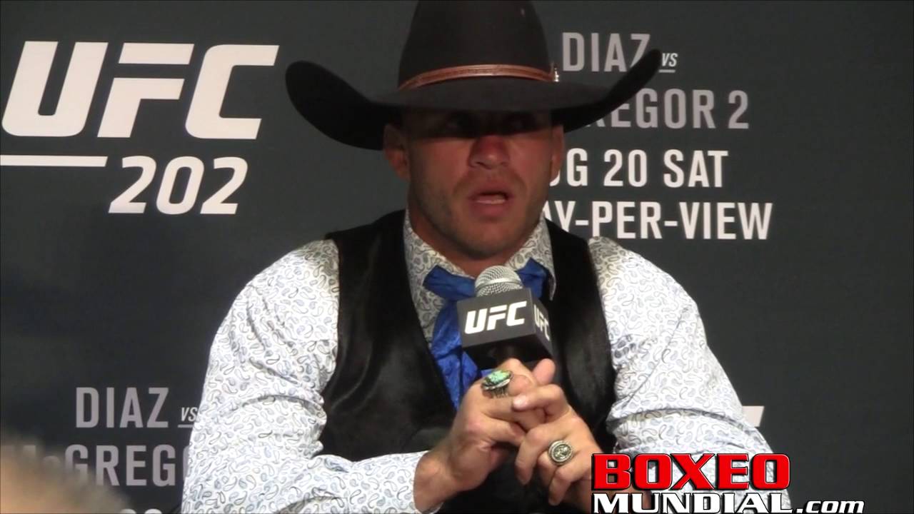 Donald ‘Cowboy’ Cerrone at UFC 202 post fight presser. Cerrone defeated Rick Story via TKO at 2:02 of the 2nd round on the PPV portion of UFC 202