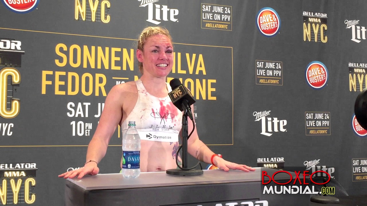 Heather Hardy made her MMA debut on Bellator 180, stopping Alicia Yauger at (4:47) of Round 3 via TKO. (strikes). Afterwards she spoke to the press about her fight and making her MMA debut.