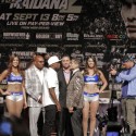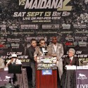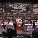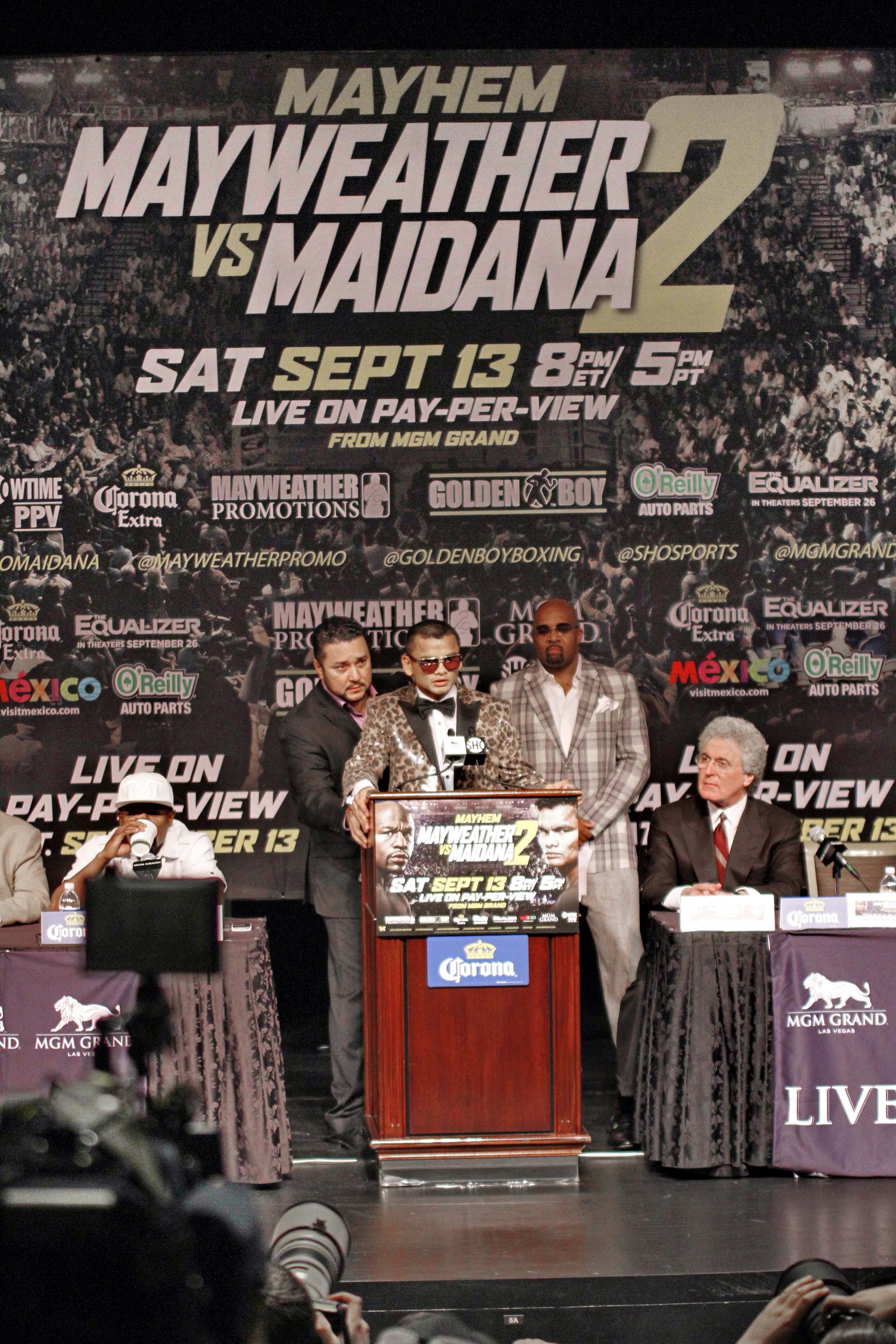 “MAYHEM: Mayweather vs. Maidana 2,” a 12-round world championship bout for Mayweather’s WBA Welterweight Belt and WBC Welterweight and Super Welterweight World Titles takes place Saturday, Sept. 13 at MGM Grand in Las Vegas and is promoted by Mayweather Promotions, Golden Boy Promotions and sponsored by Corona Extra, O’Reilly Auto Parts and “The Equalizer” in theaters Sept. 26 and Mexico – Live it to Believe It!. The event will be produced and distributed live by SHOWTIME PPV® (8 p.m. ET/5 p.m. PT) and is the fourth fight of a six-fight deal between Mayweather and Showtime Networks Inc. In the co-main event, Leo Santa Cruz defends his WBC Super Bantamweight Title against Manuel Roman in a 12-round bout and Miguel Vazquez faces Mickey Bey in a 12-round bout for the IBF Lightweight World Championship. In the pay-per-view opener, Alfredo Angulo squares against James De La Rosa in a 10-round middleweight bout (162 lbs.). The event will be also available in Spanish via secondary audio programming (SAP).