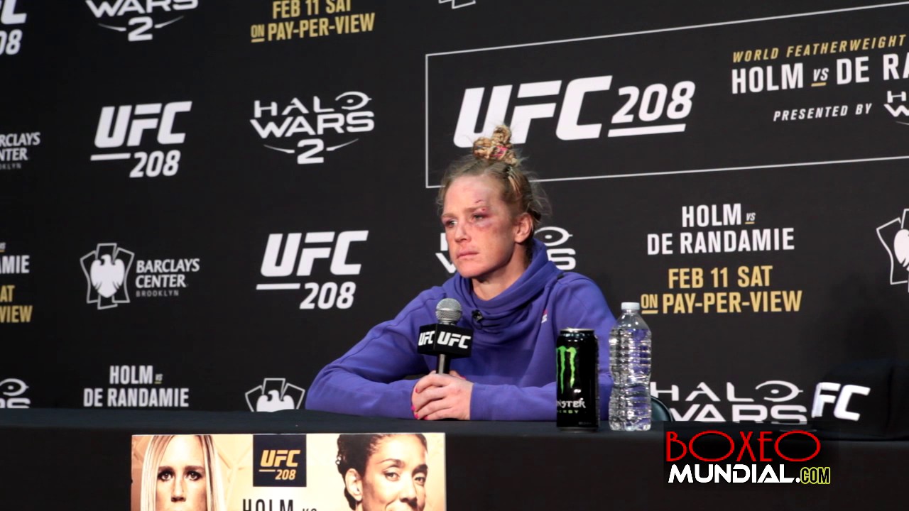 This past Saturday Germaine de Randamie becomes the first UFC featherweight champion getting a decision over former bantamweight champ Holly Holm in front of a sell out crowd at the Barlcay Center in Brooklyn, NY. The bout itself not without controvery after Randamie hit Holly after the bell in both the second and third round without warning. Holly met with the media to express her disdain for getting hit after the bell, why a point should have been deducted from her, the reasons she thought she had won and why the fight deserves a rematch.