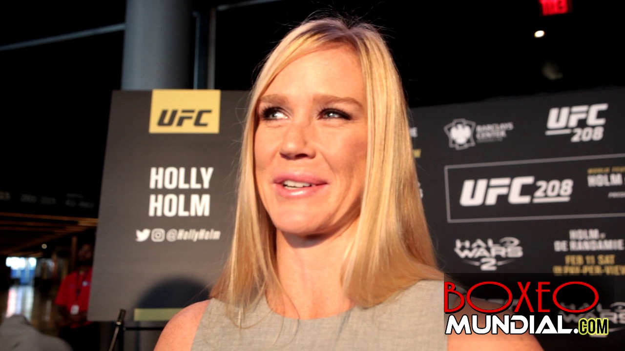 Former UFC bantamweight champion Holly Holm with be taking on Germaine de Randamie this Saturday Feb 11th at the Barclay Center in Brooklyn, NY for the featherweight title (145lbs). We caught up with Holly and spoke to her about her thoughts on Conor possibly taking on Floyd Mayweather in a boxing match and if she won on Saturday, would an Amanda Nunes bout be possible.