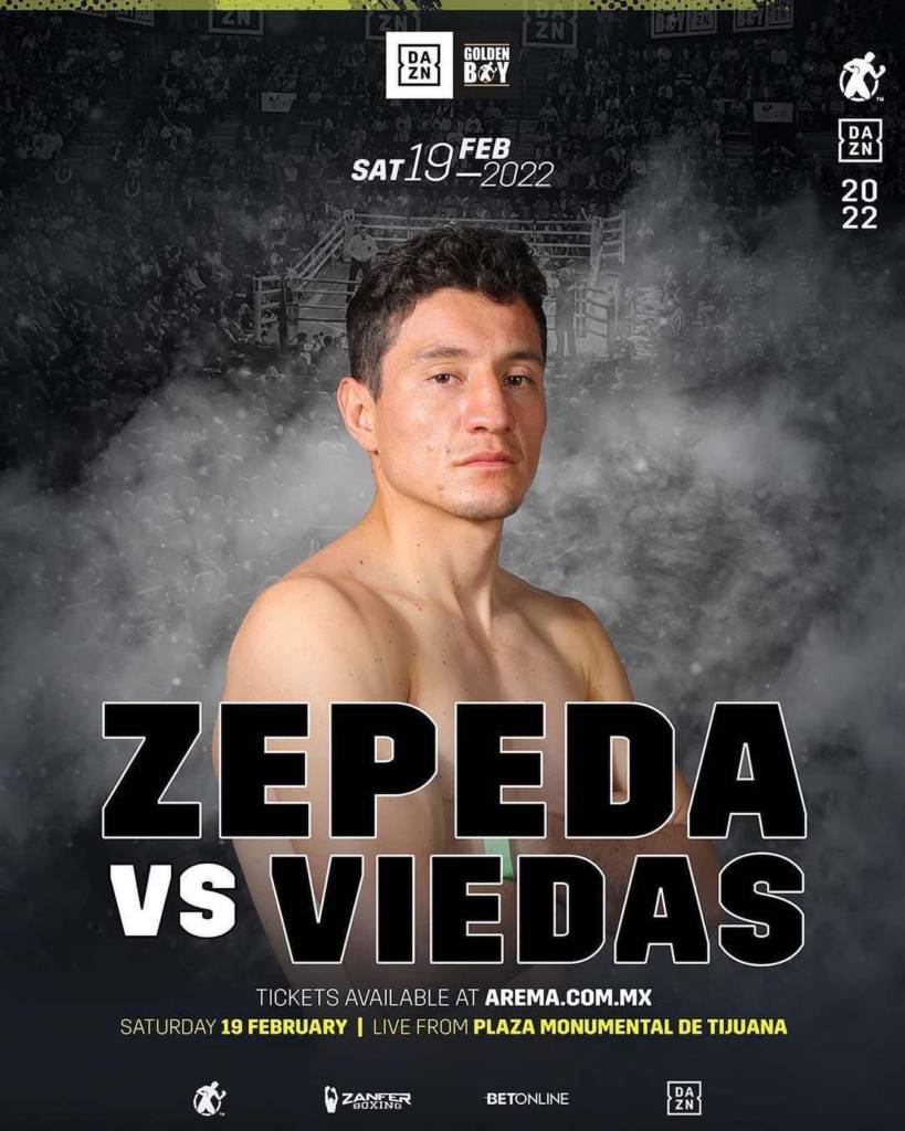 A este compromiso, William Zepeda llegará con una marca invicta de 24 victorias, 22 de estas por la vía del “cloroformo puro”, mientas que su experimentado oponente, Luis Ángel Viedas, lo hará con un palmarés de 29 triunfos, 10 de estos por nocaut, a cambio de 11 derrotas.