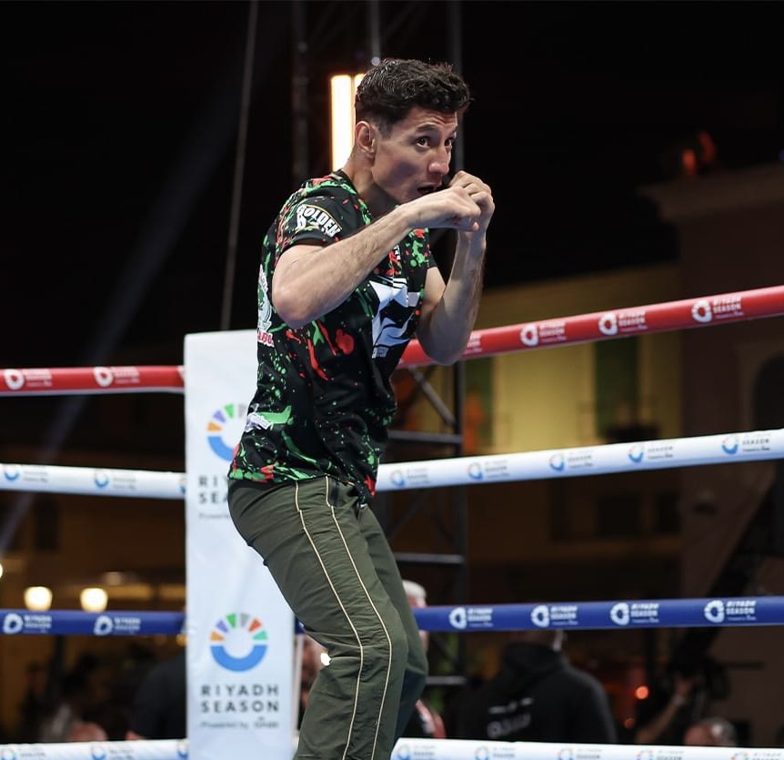 Acompañado por su equipo de trabajo, compuesto por sus entrenadores Jay “Panda” Najar y Carlos Duarte, su señor padre Luis “Pariente” Zepeda, y su representante Jaime Picos, William Zepeda Segura, lució la gran artillería al presentarse en entrenamiento a los medios de comunicación en tierras sauditas.
